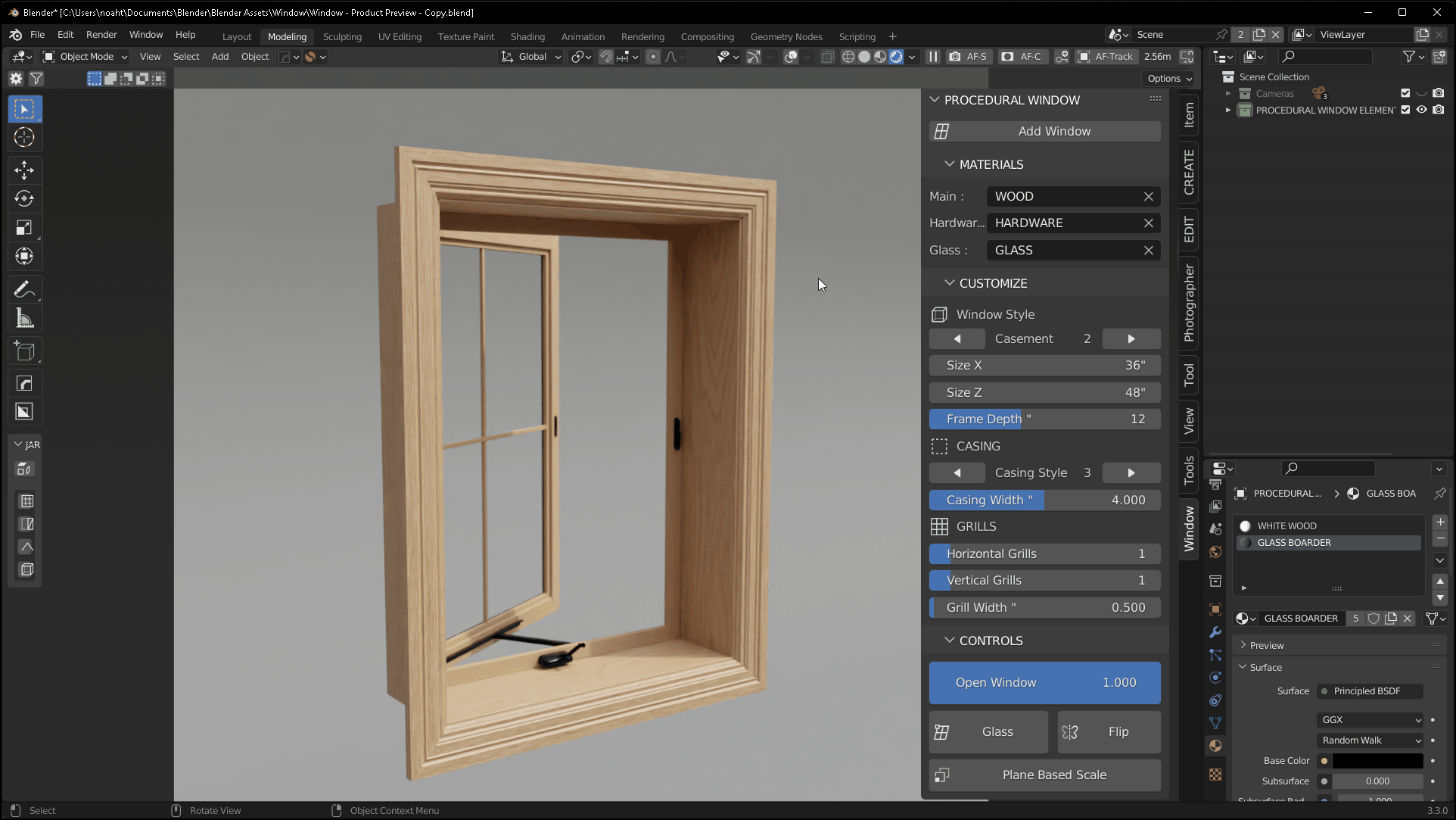 This Procedural Window Add-On was built using Geometry Nodes with the goal of giving the end user a realistic, functional and flexible Window with easy-to-use controls.